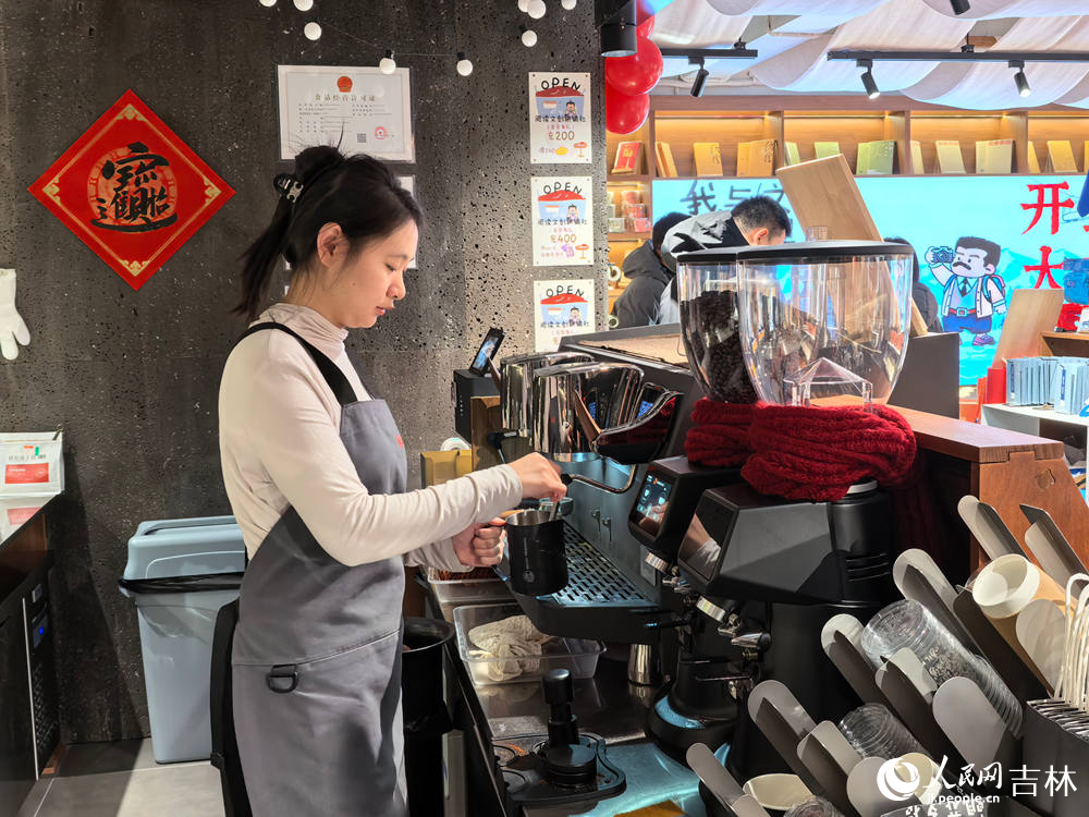 “這里不只是人民文學出版社落地東北的‘文學+咖啡+文創’空間,更想通過長春這座城市的煙火氣與暖意,讓大家看見魯迅先生‘橫眉冷對千夫指’外血肉豐滿的另一面?!?5歲的咖啡師吳凱娟作為畢業不久的大學生,特別喜歡這里的工作氛圍。